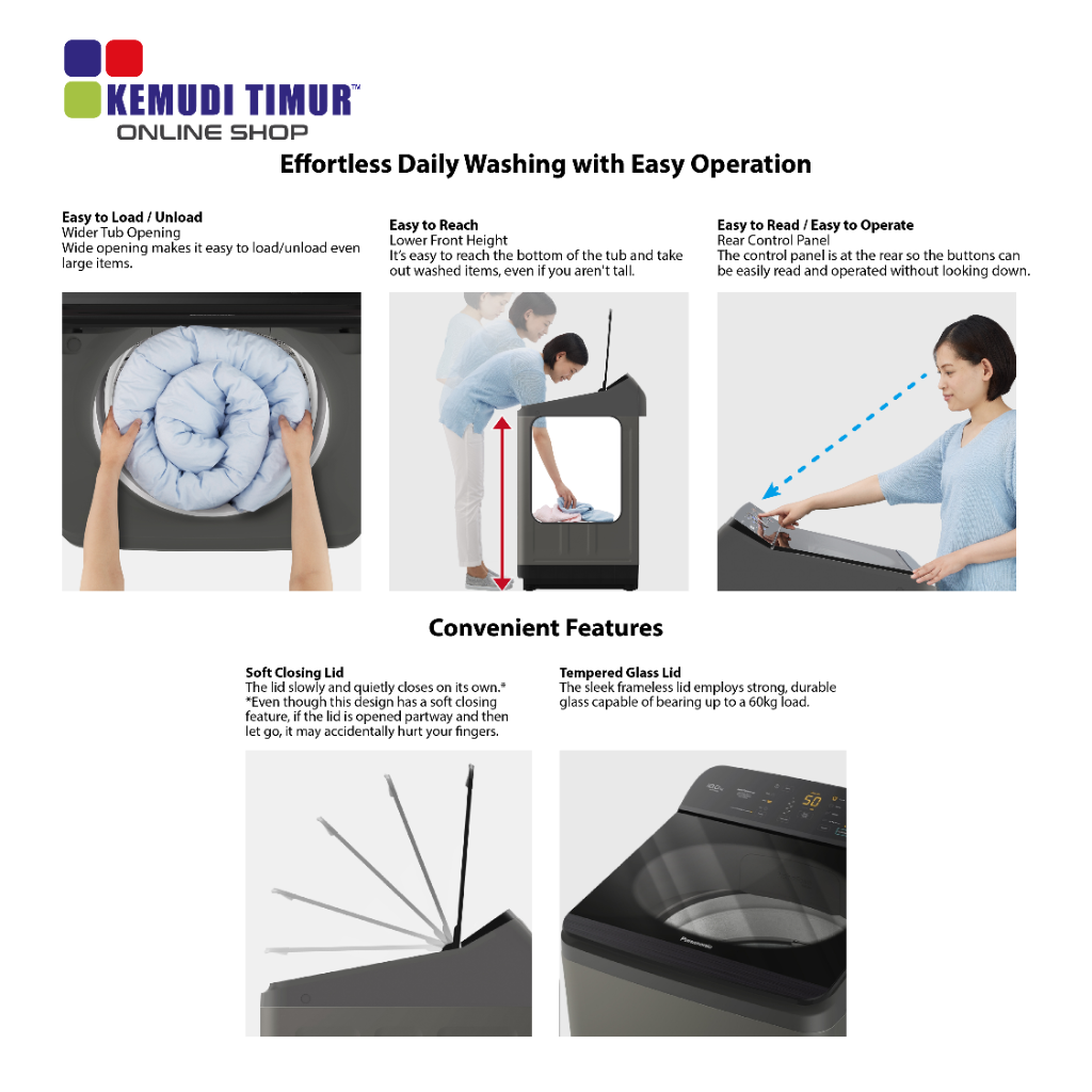 PANASONIC WASHER 14KG INV & HOT WASH TOP LOAD | NA-FD14V1BRT