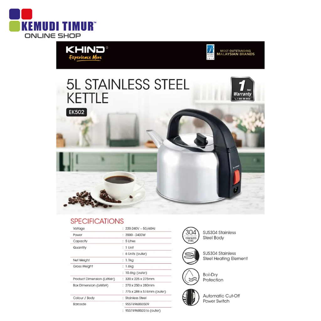 KHIND KETTLE 5L STAINLESS STEEL | EK502