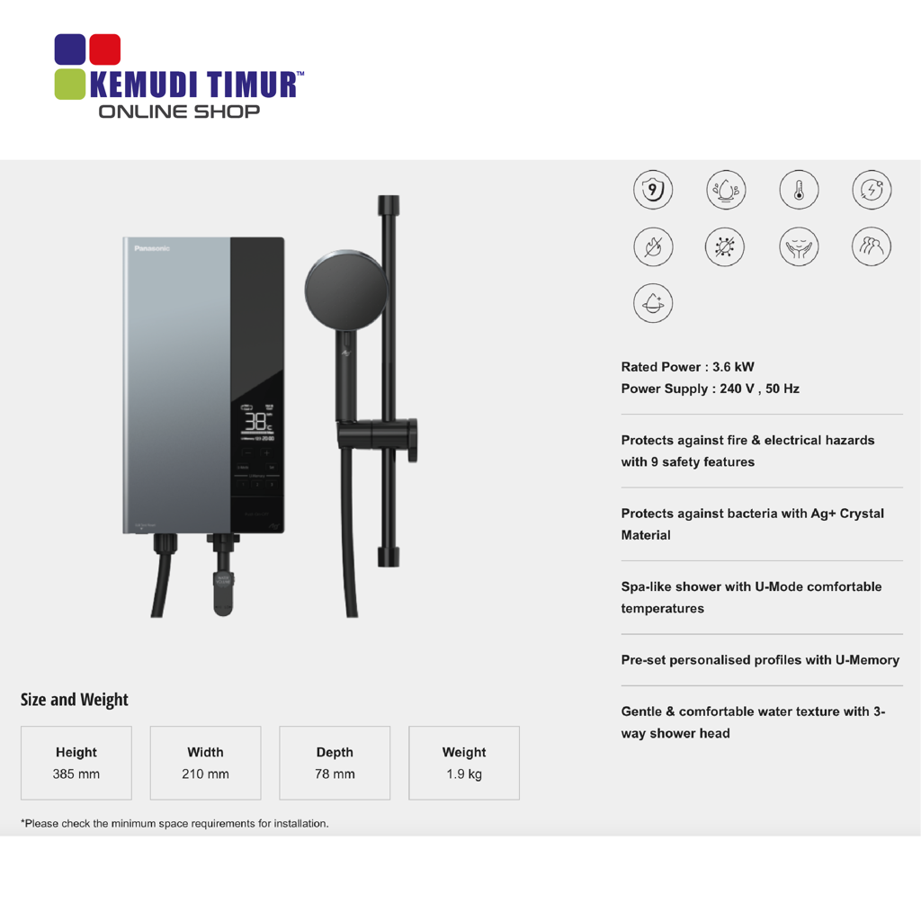 PANASONIC WATER HEATER NON JET PUMP U SERIES DIGITAL DISPLAY | DH-3UD1MZ