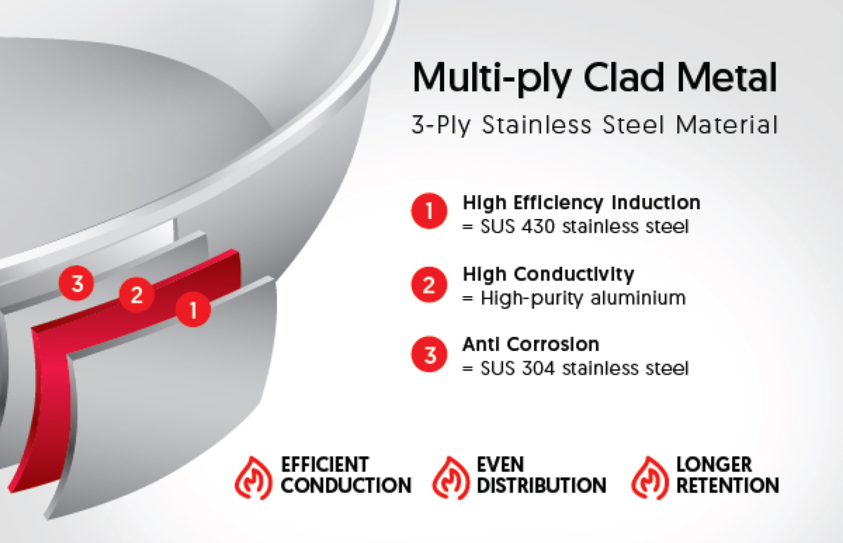 Inspired by Italian designs both classic and contemporary, PENTOLI’s cookware essentials of pots, pans and accessories represents high quality multi-ply stainless steel cookware that will elevate your cooking experience in style. Versatile and made durable, PENTOLI's innovative smart-forming technology produces variable wall thickness while optimising body weight and heat distribution of the cookware to ensure faster cooking time and lesser energy consumption.